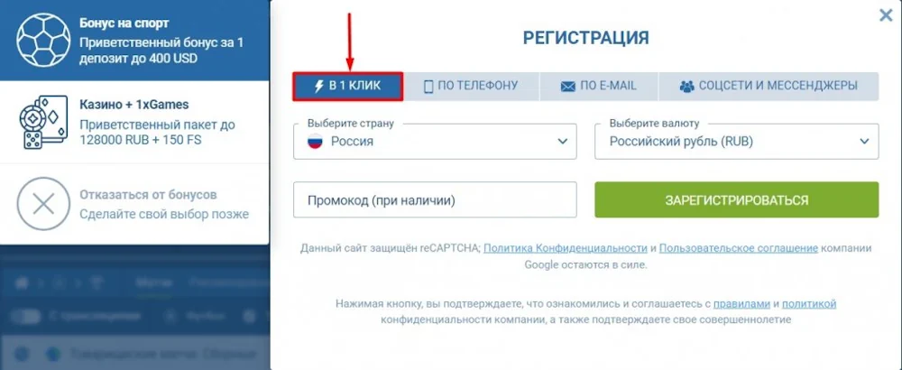 1xBet регистрация